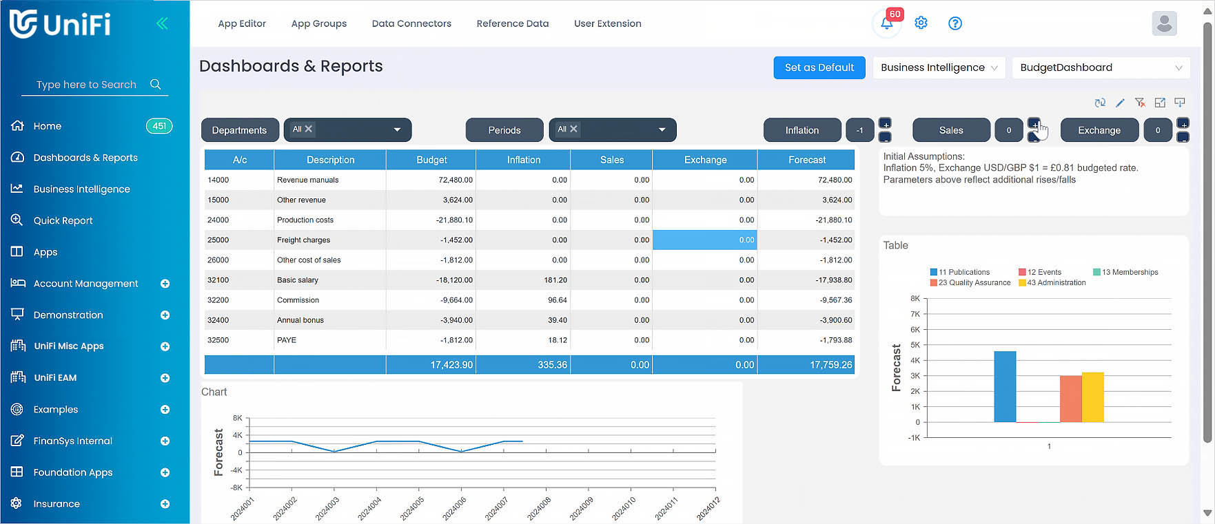 UniFi Budgeting and Forecasting is more flexible and user-configurable than other budgeting software – the UniFi platform allows for complete control over the data being captured, how much analysis and further detail is required, and what authorisation process the budgets should go through.